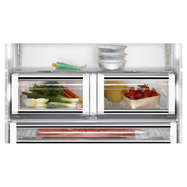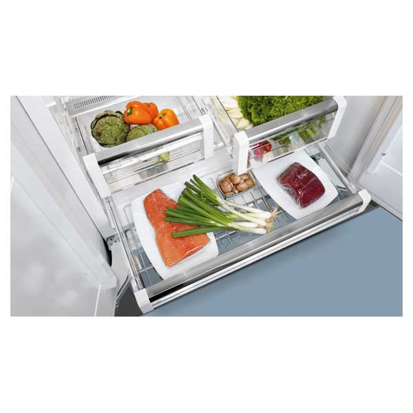Siemens Buzdolaplarındaki Teleskopik rayların üzerindeki çekmeceler rahat ve güvenli bir şekilde hareket ettirilebilir. Kullanımı kolaydır ve saklanan gıdaları tamamen görebilmeyi ve onlara kolayca ulaşabilmeyi sağlar.